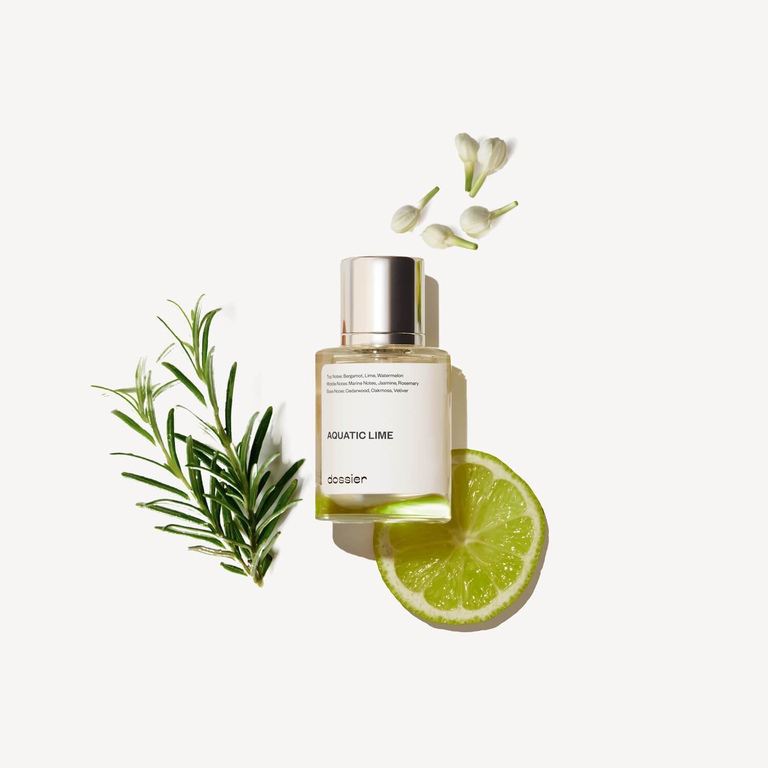 Aquatic Lime presenta un toque de frutas de agua dulce, notas marinas y lima ácida, seguido de notas intensos de madera y musgo, ensambladas delicadamente.