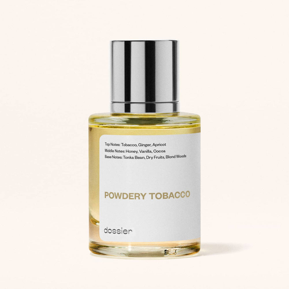 Powdery Tobacco sublima la fragancia única de las hojas de tabaco. Los aspectos afrutados y de miel dulce del tabaco se destacan y se acentúan con un toque de jengibre. Próximo, en fondo de la fragancia desarolla para obtener más intensidad gracias a la vainilla, el haba tonka y las notas goumets de frutas secas y cacao.