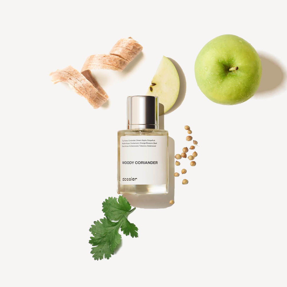 Woody Coriander empieza con notas especiadas de cilantro y cardamomo, equilibradas con la frescura de la toronja, la manzana verde y la albahaca. Próximo, las notas sensuales, ambarinas y amaderadas se desarrollan con elegancia para revelar toda la personalidad del perfume.